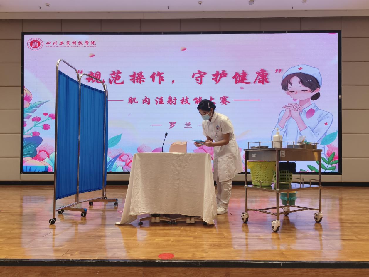 为纪念“5·12”国际护士节,弘扬南丁格尔救死扶伤的人道主义精神,提升护理专业学生临床操作技能,4月14日晚,大健康学院在龑江C区报告厅举办肌肉注射技能大赛决赛。学院副院长刘琼碧,教师胡桂萍、谢雨婷、唐巧、余佳敏、杨正双担任评委,李若羲、庄晓宇同学主持比赛。