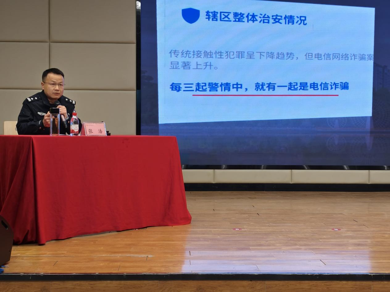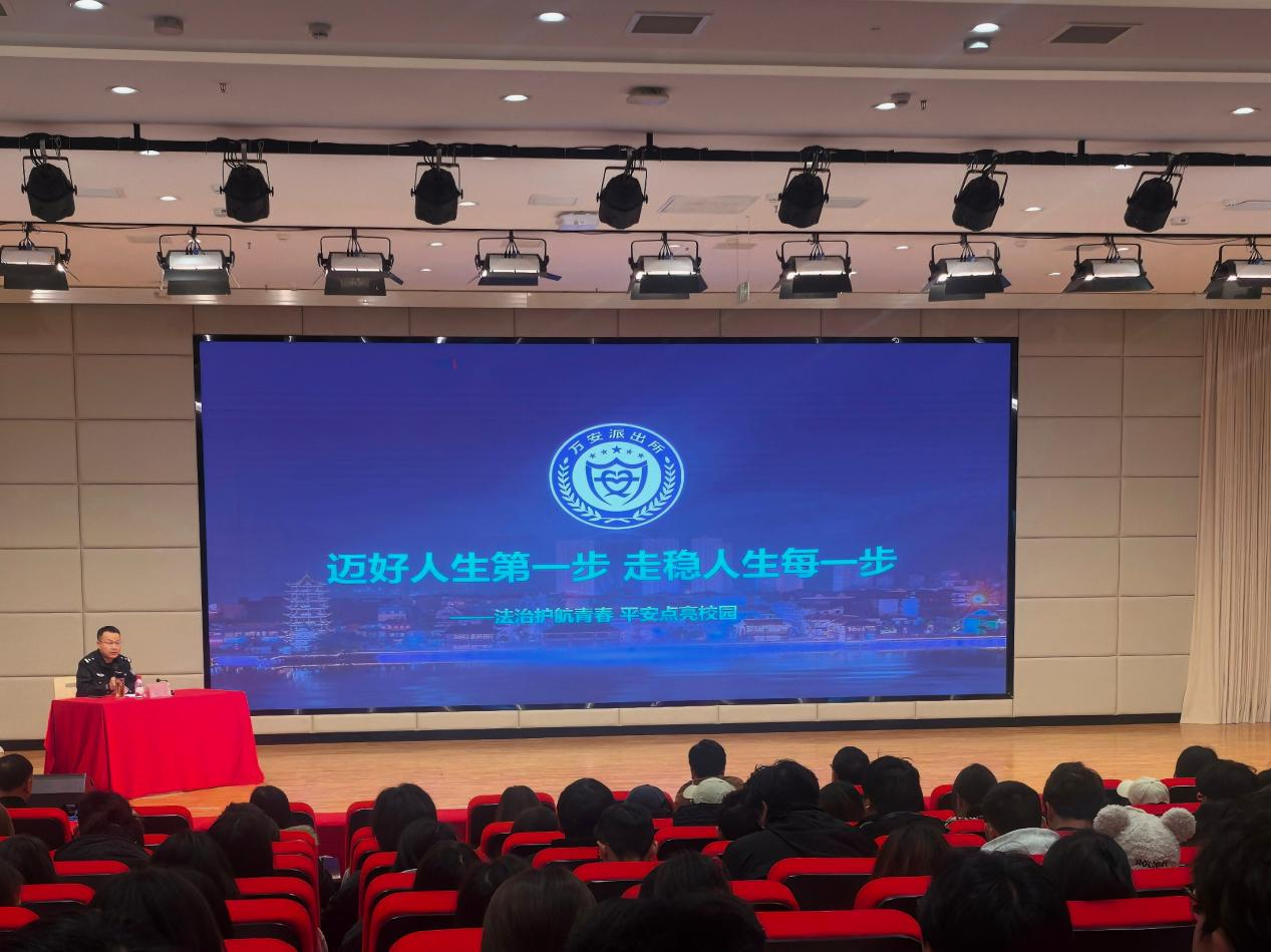 为引导青年学生扣好人生“第一粒扣子”,筑牢成长根基,3月19日上午,学校在龑江C区报告厅举办“迈好人生第一步,走稳人生每一步”专题讲座。万安派出所副所长张浩应邀担任主讲,各二级学院300名师生代表到场聆听。