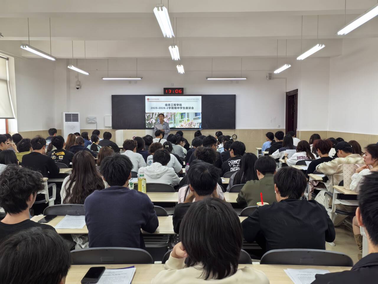 为深入了解本学期教学运行与管理服务现状,持续提升人才培养质量,信息工程学院于4月23日在龑江C412教室召开2025-2026学年第二学期期中师生座谈会。学院教学办主任主持会议,教学副院长柯莉出席会议,来自土木工程、工程造价、道路桥梁与渡河工程、艺术设计、电信及电气等6个本科专业的学生代表参加了座谈。