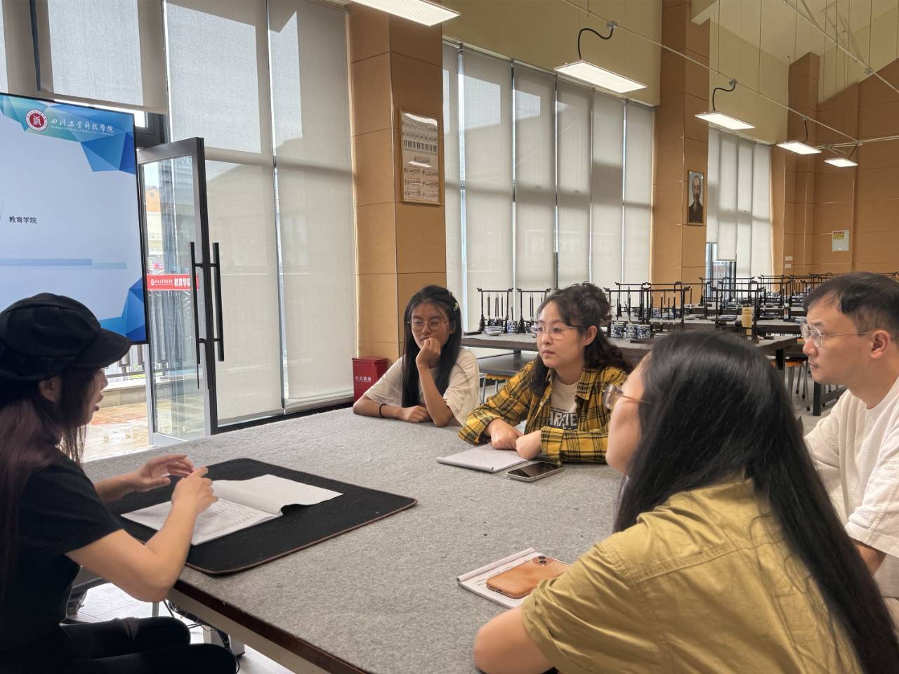 9月28日,教育学院专业技能教研室在实训中心A2-1书法实训室开展教研活动。教研室主任刘琴主持活动,专职教师尹茜、张蕊及兼职教师梅芮参加。与会教师围绕日常教学管理优化、内涵式建设推进和师资队伍提升等议题展开深入探讨。
