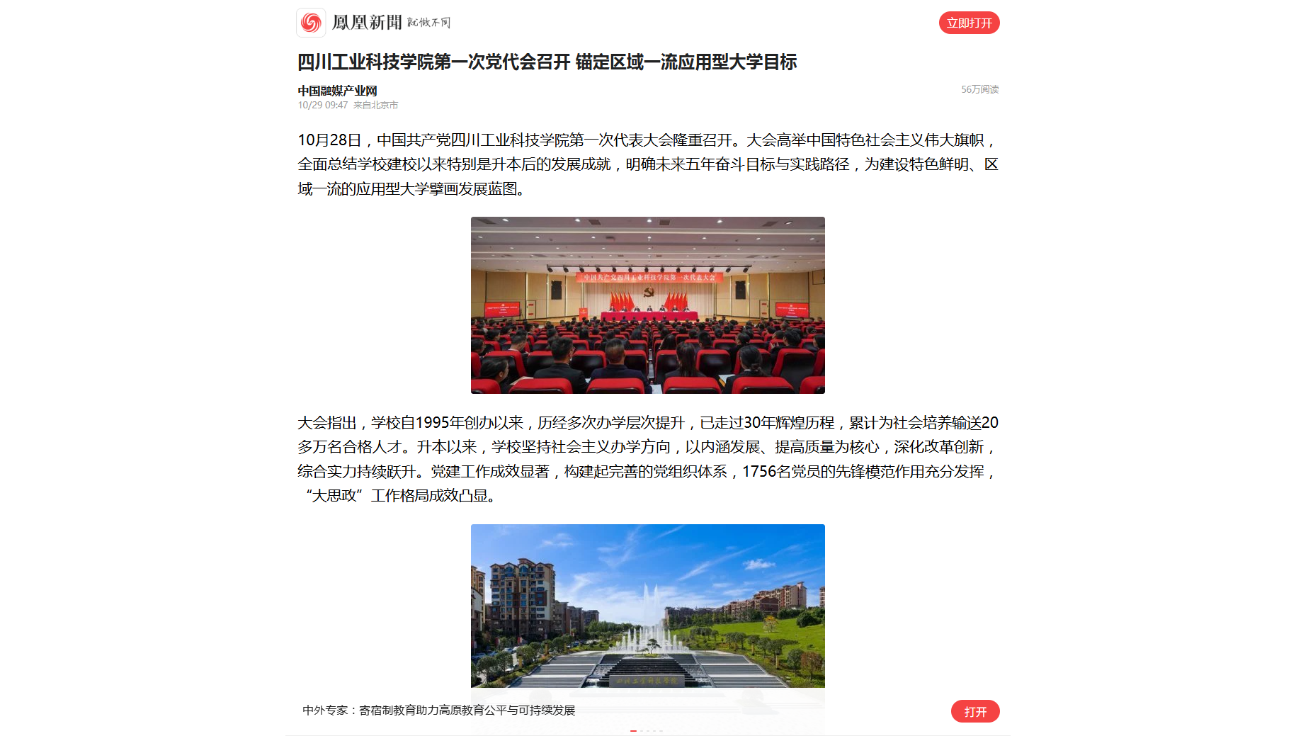 【凤凰新闻】四川工业科技学院第一次党代会召开 锚定区域一流应用型大学目标