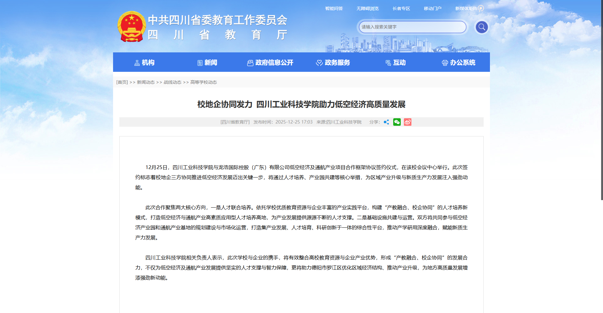 【四川省教育厅】校地企协同发力 四川工业科技学院助力低空经济高质量发展