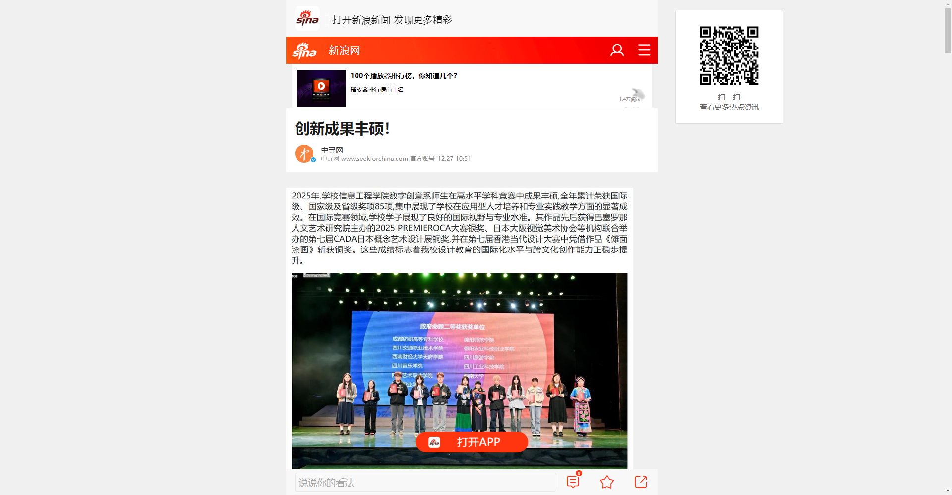 2025年,学校信息工程学院数字创意系师生在高水平学科竞赛中成果丰硕,全年累计荣获国际级、国家级及省级奖项85项,集中展现了学校在应用型人才培养和专业实践教学方面的显著成效。