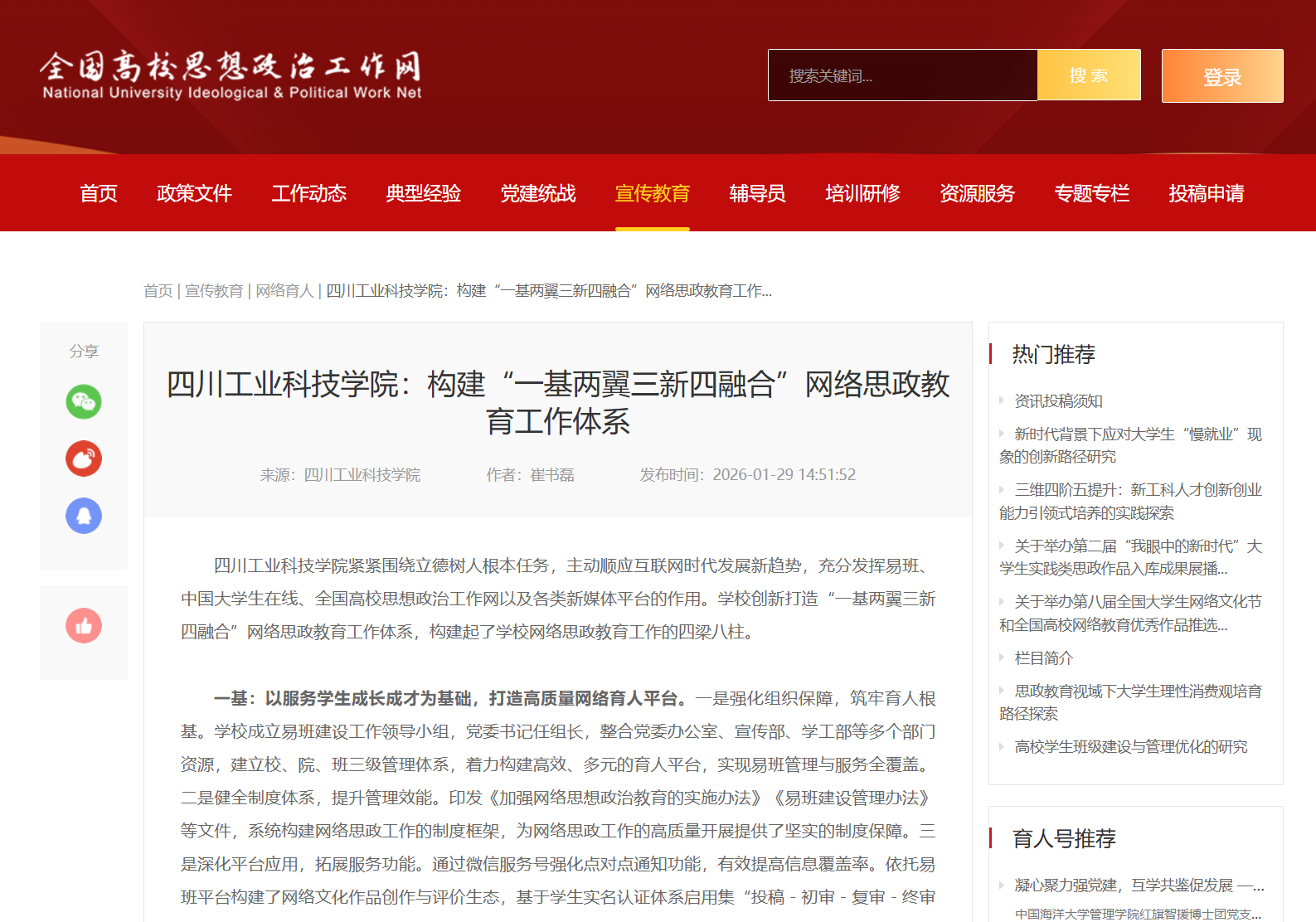 【全国高校思想政治工作网】四川工业科技学院:构建“一基两翼三新四融合”网络思政教育工作体系