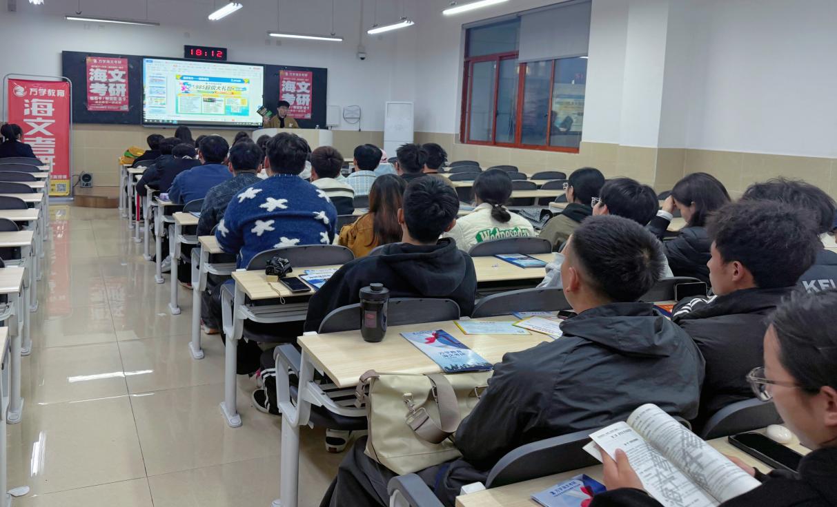 讲座现场座无虚席,体育学院学子专注聆听考研名师赵卓的分享。赵卓老师从目标确立、时间管理、学科备考策略等多个维度,对体育类专业考研全过程进行了系统分析和细致讲解,帮助学生明确备考方向,把握复习重点难点。