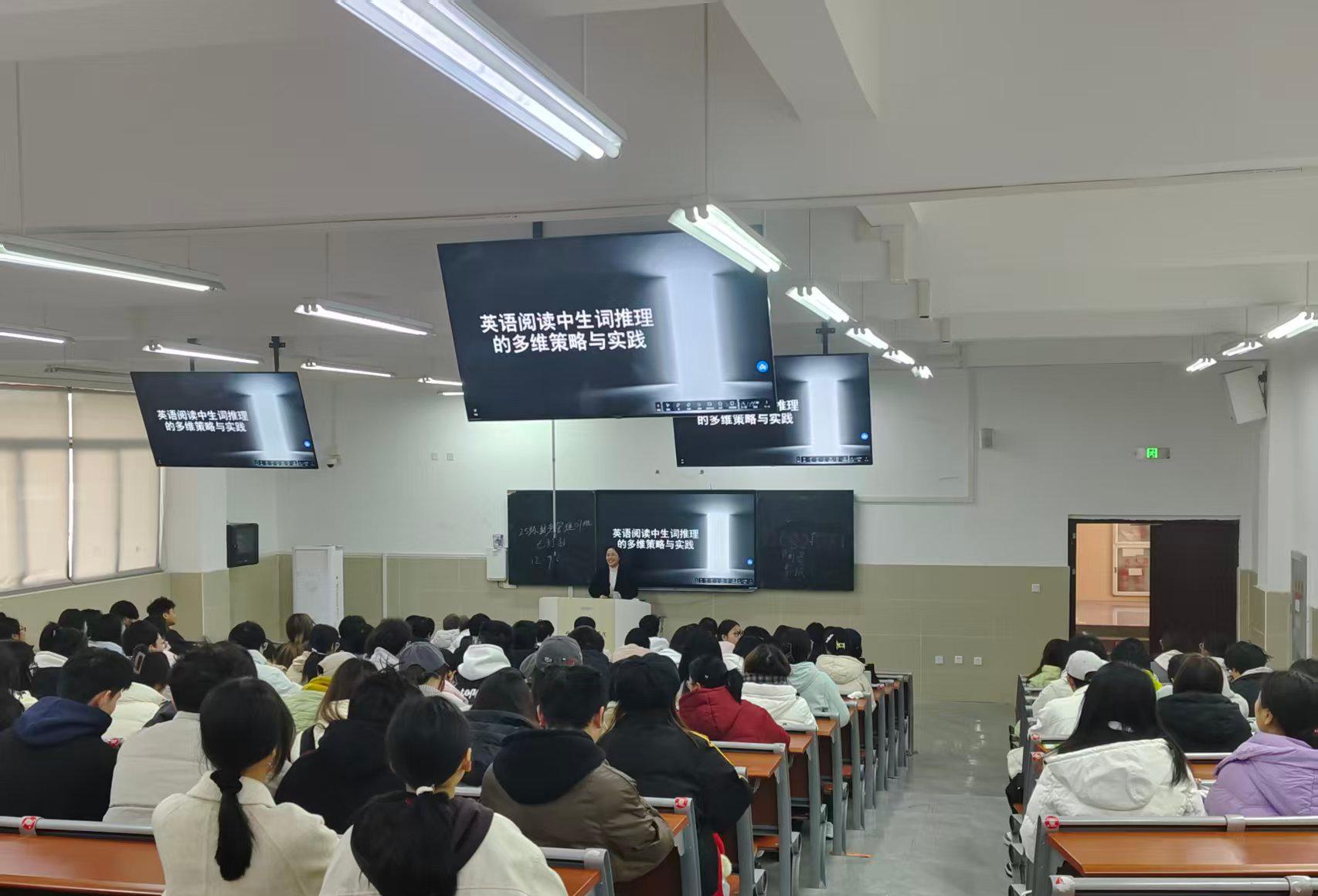 为助力学生有效克服英语阅读中的词汇障碍,提升阅读能力与学习自信,12月10日中午,由经济管理学院主办的《英语阅读中生词推理的多维策略与实践》专题讲座在龑江C212教室举行。本次讲座特邀学院副教授朱玉梅主讲,吸引了近200名学生到场学习,现场气氛热烈。