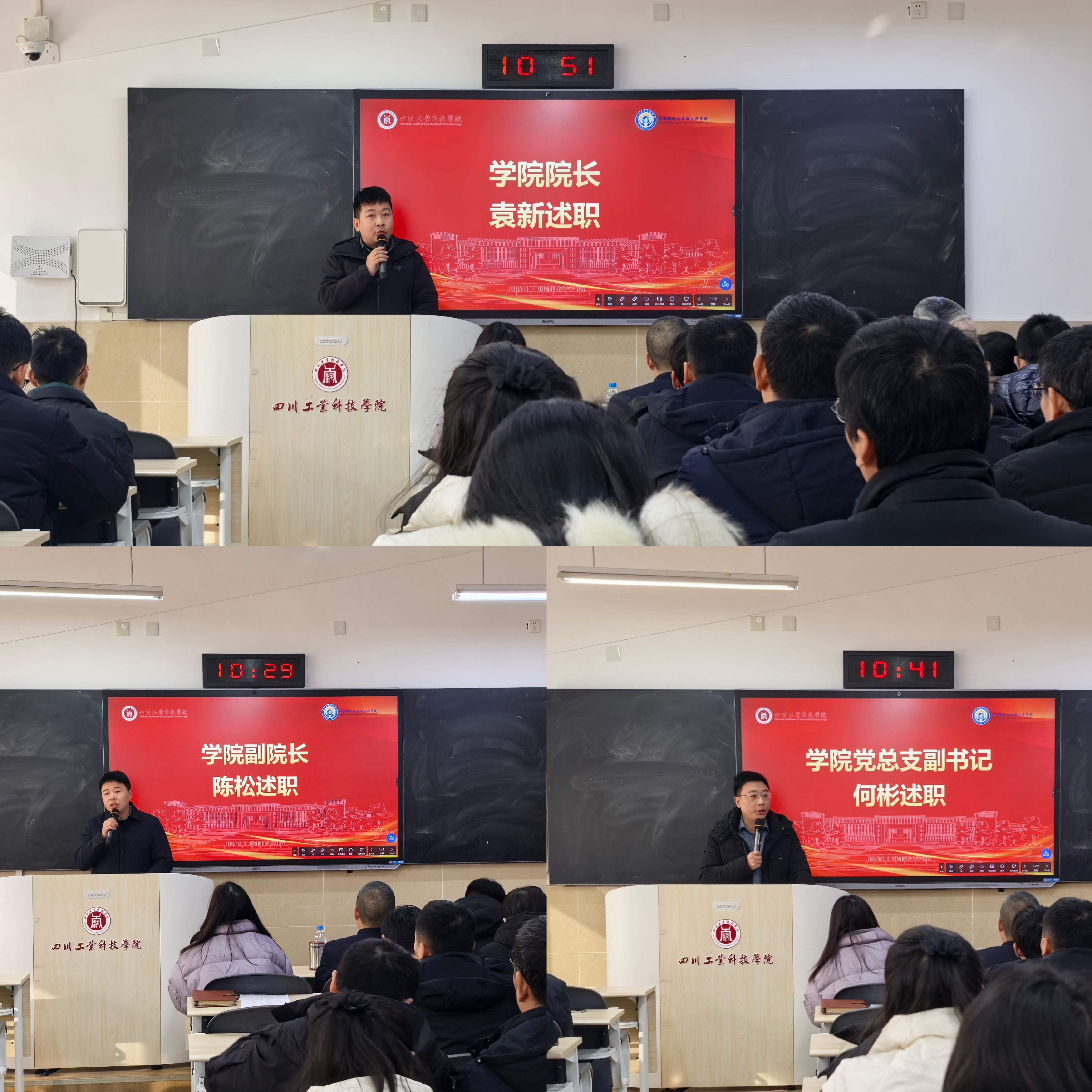 会议首先进行学院处级干部2025年度工作述职。学院各职能部门负责人围绕学校年度重点任务和学院发展目标,紧扣立德树人根本任务,分别结合分管领域工作,从德、能、勤、绩、廉五个方面对个人过去一年的履职情况进行了全面汇报。述职报告立足岗位实际,坚持问题导向,既客观总结了过去一年在推动教学改革、加强党建与学生工作、促进学院整体发展等方面取得的进展与成效,也实事求是地分析了当前工作中存在的不足与挑战,并提出了针对性的改进思路和2026年的重点工作规划。述职过程体现了班子成员的责任担当与对学院发展的深入思考。