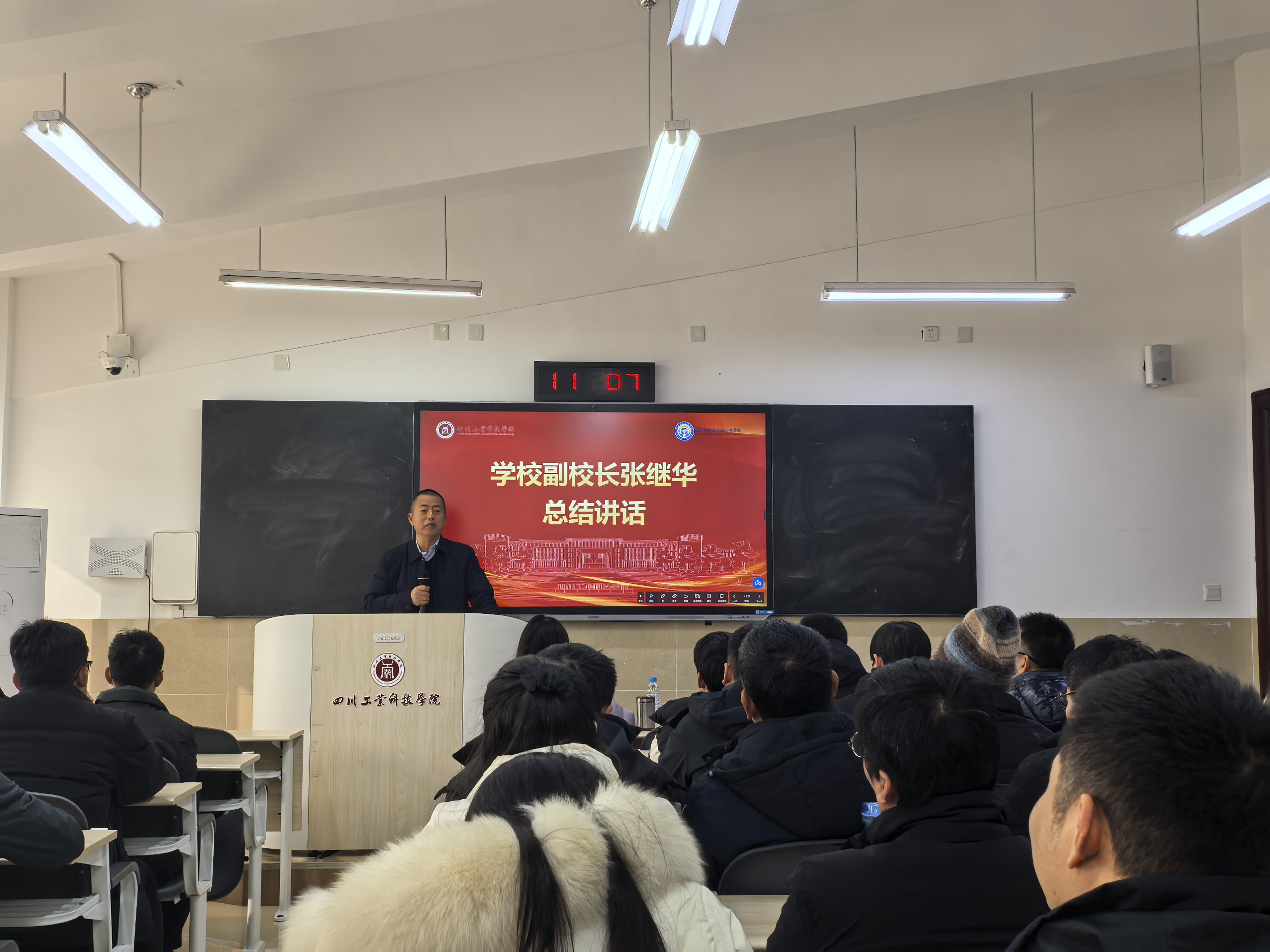 随后,学校副校长张继华发表总结讲话。他首先对学院在2025年攻坚克难、开拓进取所取得的扎实业绩表示祝贺,并向全体教职工的敬业奉献致以感谢。他简要通报了学校在过去一年整体事业发展中取得的标志性成就。结合高等教育新部署和学校战略新要求,张继华对学院2026年工作提出三点明确要求:一是要提高政治站位,强化使命担当。 要自觉将学院工作置于国家与区域发展大局中谋划推进,在学科专业优化、创新人才培养、社会服务赋能等方面展现更大作为。二是要坚持系统观念,做到手中有招。要加强全局性谋划与战略性布局,找准关键发力点,特别是在科研攻关与教育教学改革中,要强化团队作战,凝聚合力,力争实现标志性成果的突破。三是要发扬担当精神,狠抓工作落实。 要激发“拼”的精神,昂扬“干”的状态,保持“稳”的定力,勇于挑重担、啃硬骨头,以钉钉子精神确保各项任务落到实处、取得实效。