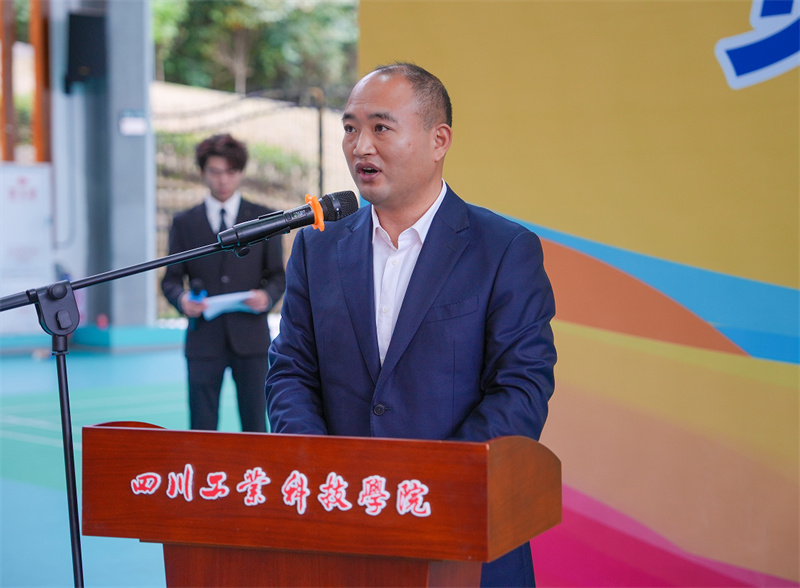 11月10日,四川工业科技学院2025球类运动会正式拉开帷幕。学校校领导、工会负责同志出席开幕式,学校党委副书记、工会主席杨朋代表全校师生致开幕词。