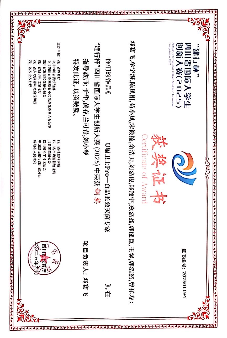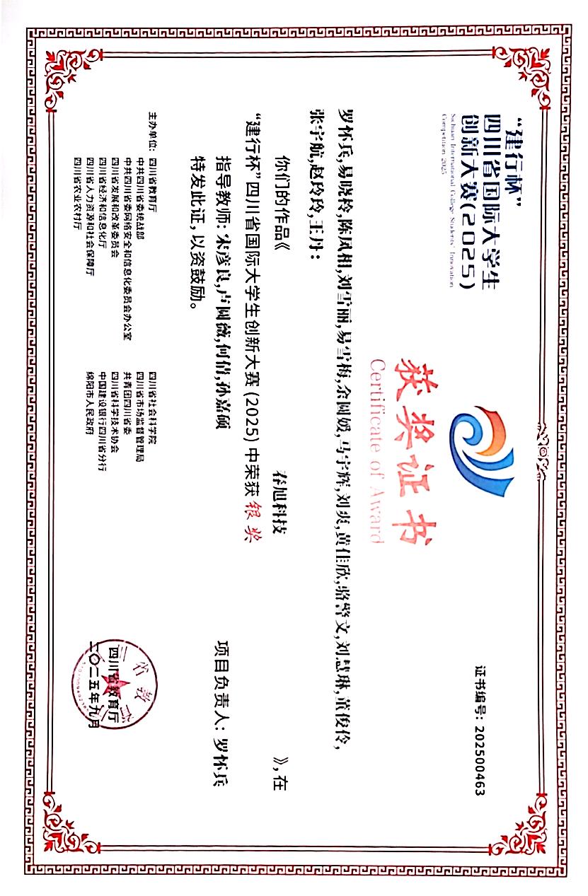 近日,四川省国际大学生创新创业大赛省级决赛在西南科技大学落幕。学校选派的三支参赛团队凭借出色表现,最终荣获“一银两铜”的优异成绩。其中,罗怀兵负责的“春旭科技”项目与邓赛飞带领的“U辐卫士Pro”项目分获高教主赛道银奖和铜奖;郭健臣团队的“红荔兴梦”项目斩获“青年红色筑梦之旅”赛道铜奖,实现学校在该赛道奖项零的突破。