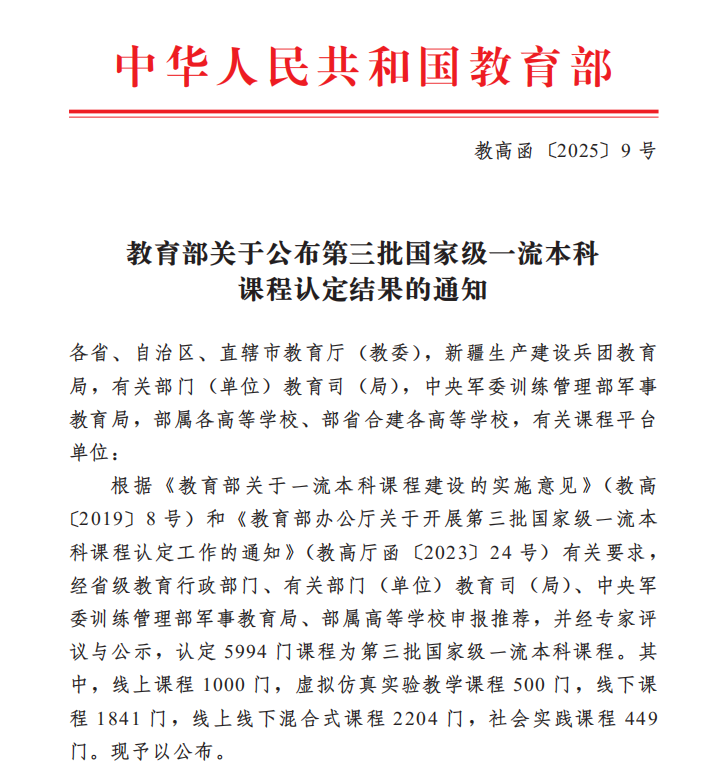 国家级一流本科课程建设是教育部全面推动高等教育内涵式发展、着力打造高质量“金课”的核心举措。此次《大学生心理健康教育》课程的入选,是学校持续推进教育教学改革、高度重视课程建设的重要成果,充分展现了学校教师优秀的教学研究与课程建设能力,也为全校其他课程的建设与改革提供了可借鉴的宝贵经验。