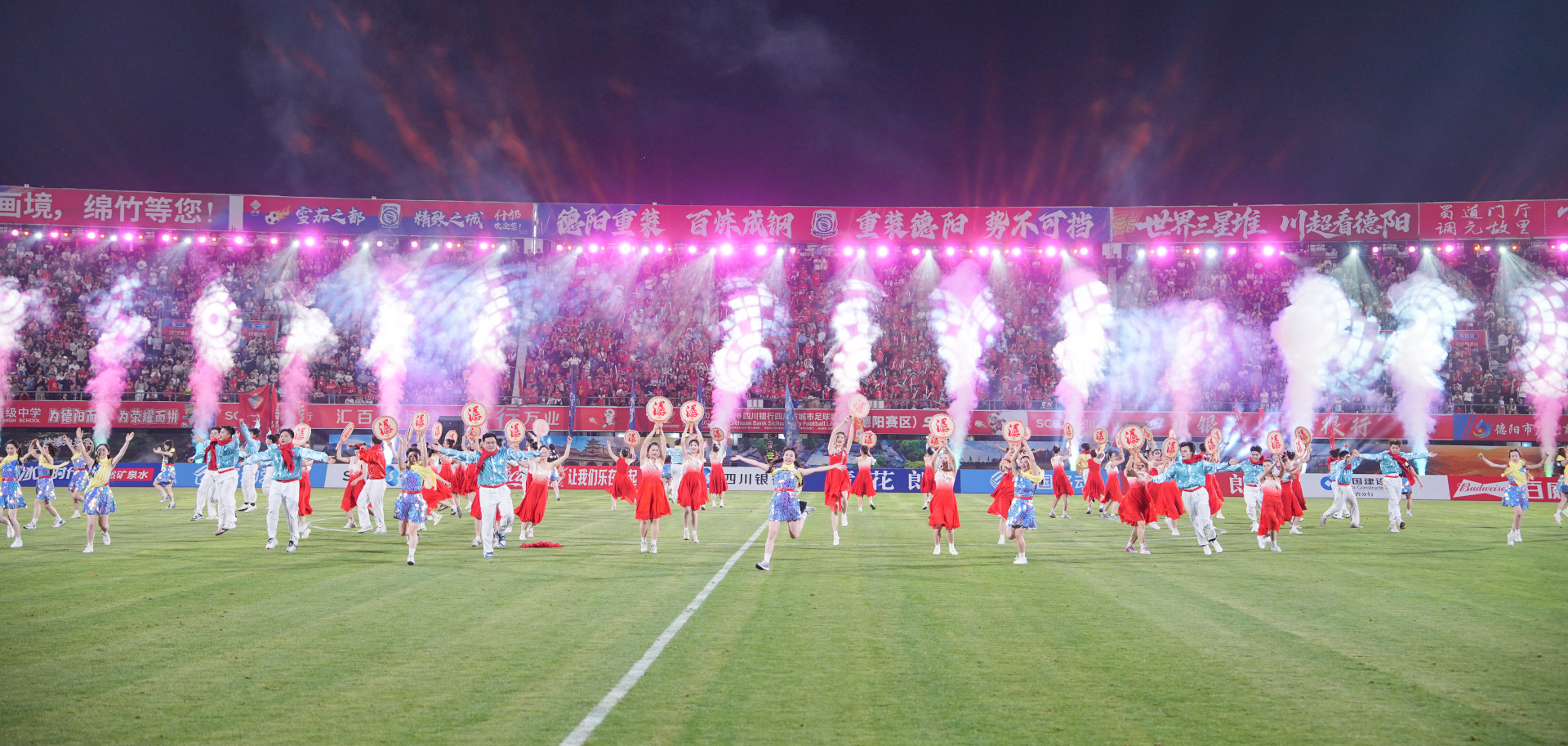 古韵新声融体育,青春风采耀赛场。4月25日,2025/2026赛季川超联赛总决赛第七轮,德阳重装队坐镇主场迎战达州川汉子队,开幕式上由四川工业科技学院体育学院500余名师生带来的非遗民俗展演《潺舞》震撼登场,以古蜀风华邂逅足球激情,为现场观众奉上一场刚柔并济的文化盛宴,也为家乡球队呐喊助威。
