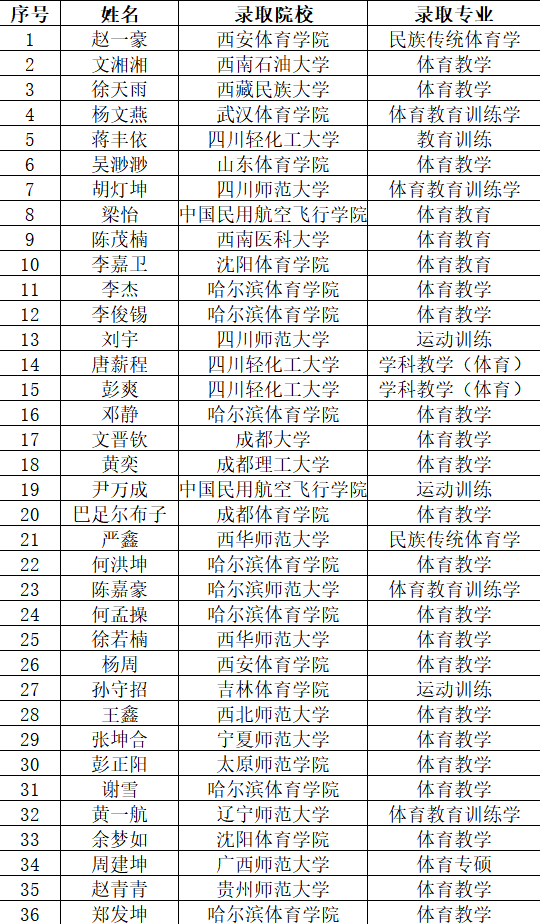近日,2026年全国硕士研究生招生录取工作圆满结束。体育学院考研升学再创佳绩,共有36名学子被录取,升学人数、录取率及院校层次均实现稳步提升,充分体现了学院扎实的人才培养质量与学科建设成效。
