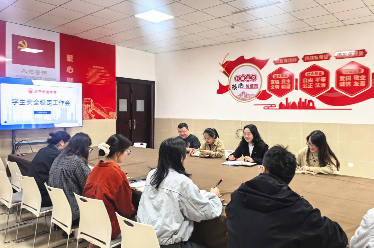 4月28日上午,经济管理学院在龑江E区511会议室召开学生安全稳定工作会。会议由学院党总支副书记马娟花主持,全体辅导员参加。