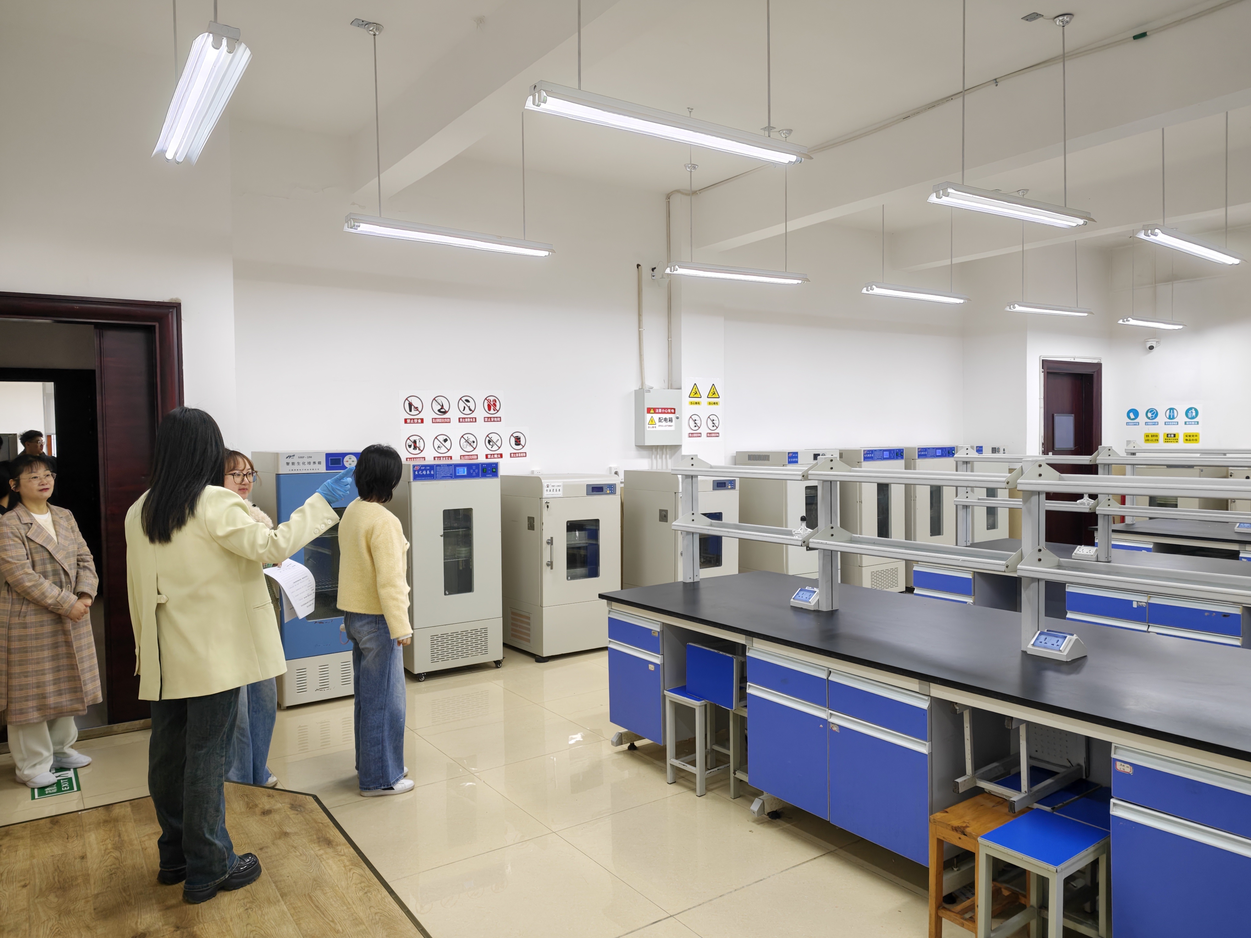 督导组一行先后走访微生物实验室、化学实验室、工艺实训中心等教学科研场所,通过现场查看、查阅台账、与实验室管理人员交流等方式,重点检查了实验室环境与卫生、仪器设备使用与维护、用水用电安全、消防设施配备、危险化学品管理与废弃物处置、实验教学准备及安全操作规程执行情况等内容。督导专家还详细了解了实验室日常巡查记录、安全准入制度落实以及学生实验操作规范等情况。