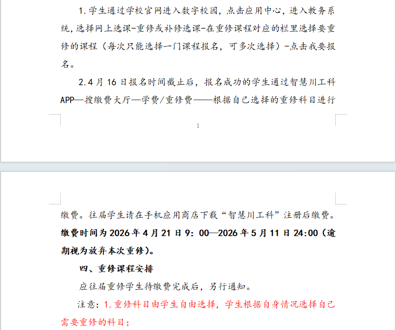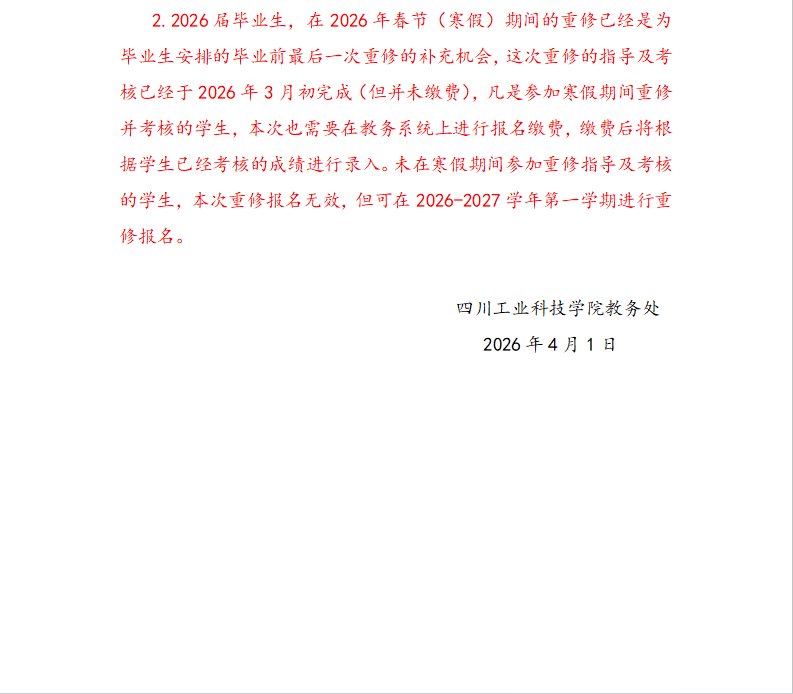 关于2025-2026学年第二学期课程重修安排的通知