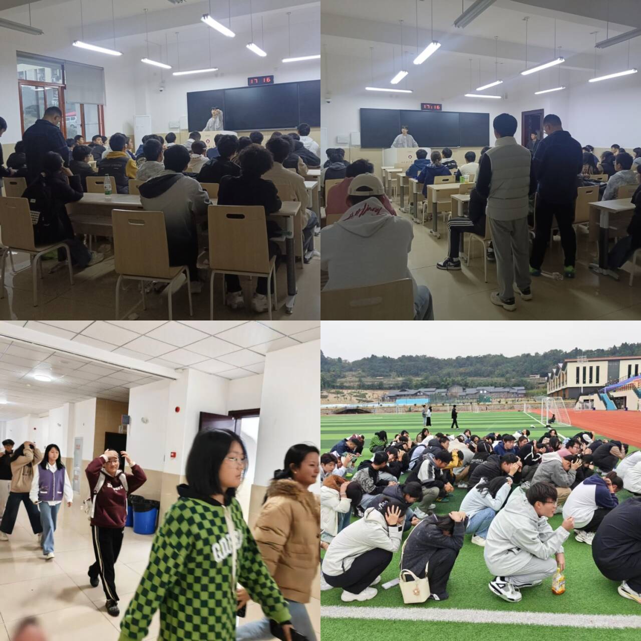 演练过程中,全体参与人员反应迅速、配合密切,学生在引导下严格遵循逃生准则,沿预定路线快速、有序撤离,整个流程组织严密、秩序井然。