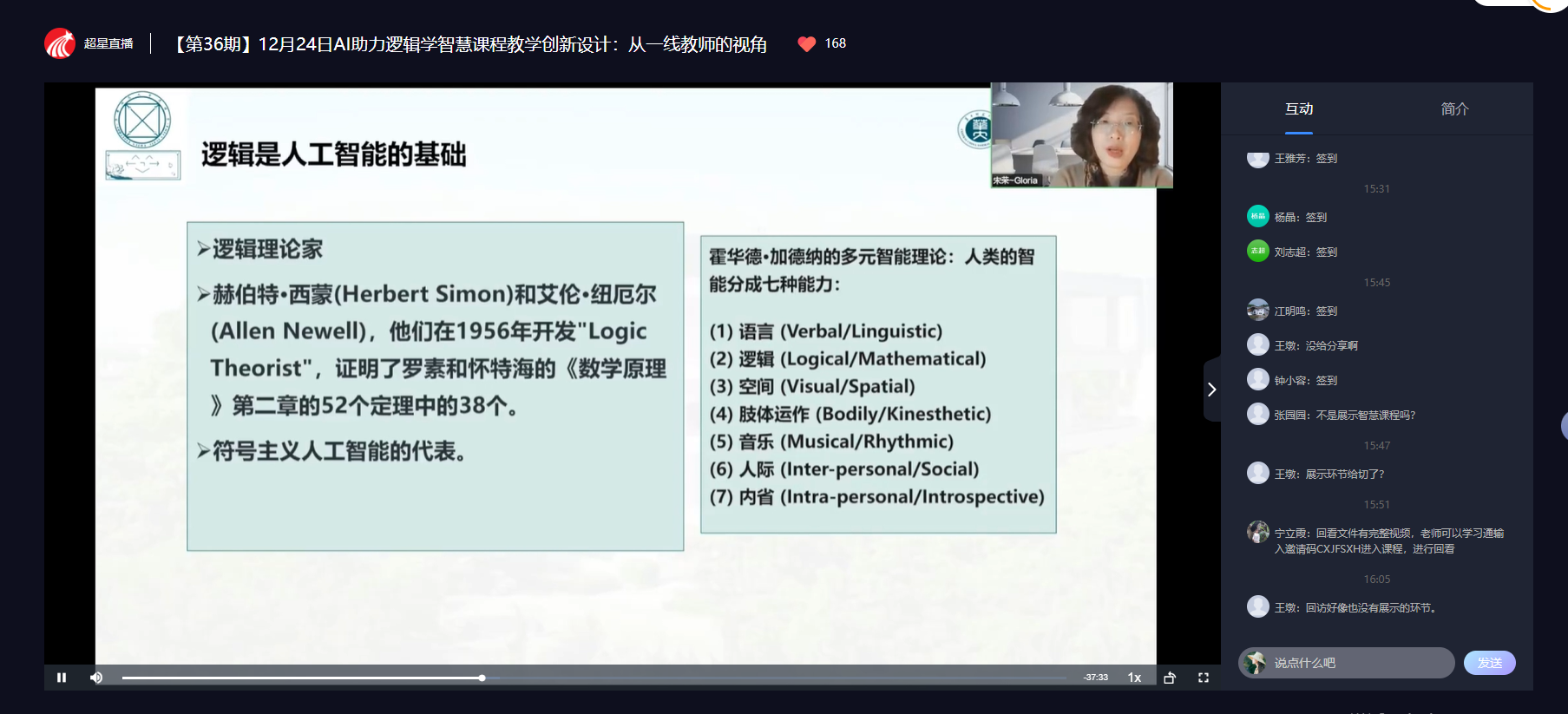 12月24日下午,学校教师教学发展中心通过超星学习平台举办“师享汇”第三十六期线上直播讲堂。本次讲座特邀天津科技大学人工智能教育应用专家贾原媛教授,以“AI助力逻辑学智慧课程教学创新设计”为主题,为全校无课教师带来了一场兼具前瞻性与实操性的专题分享。全校近三百名教师通过线上方式积极参与。