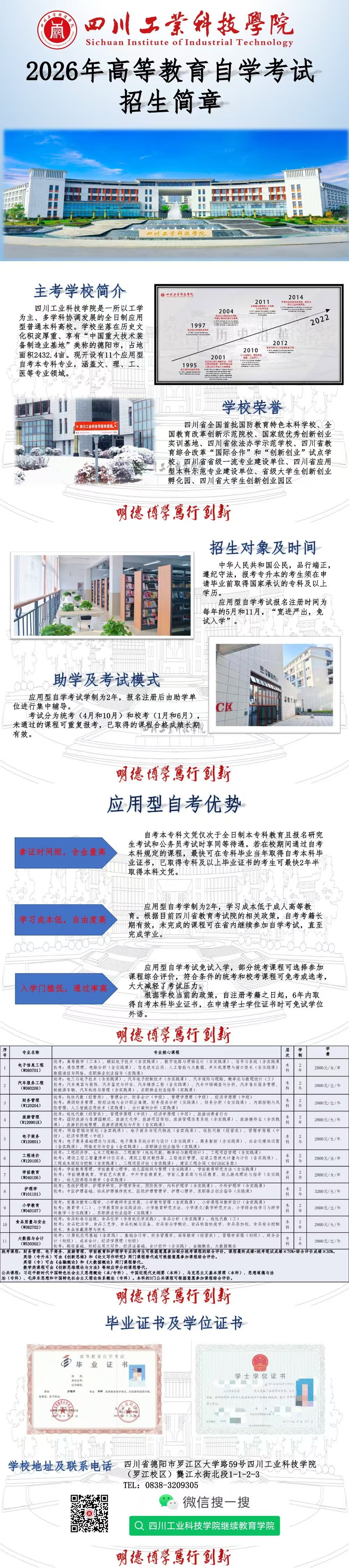 四川工业科技学院2026年高等教育自学考试招生简章