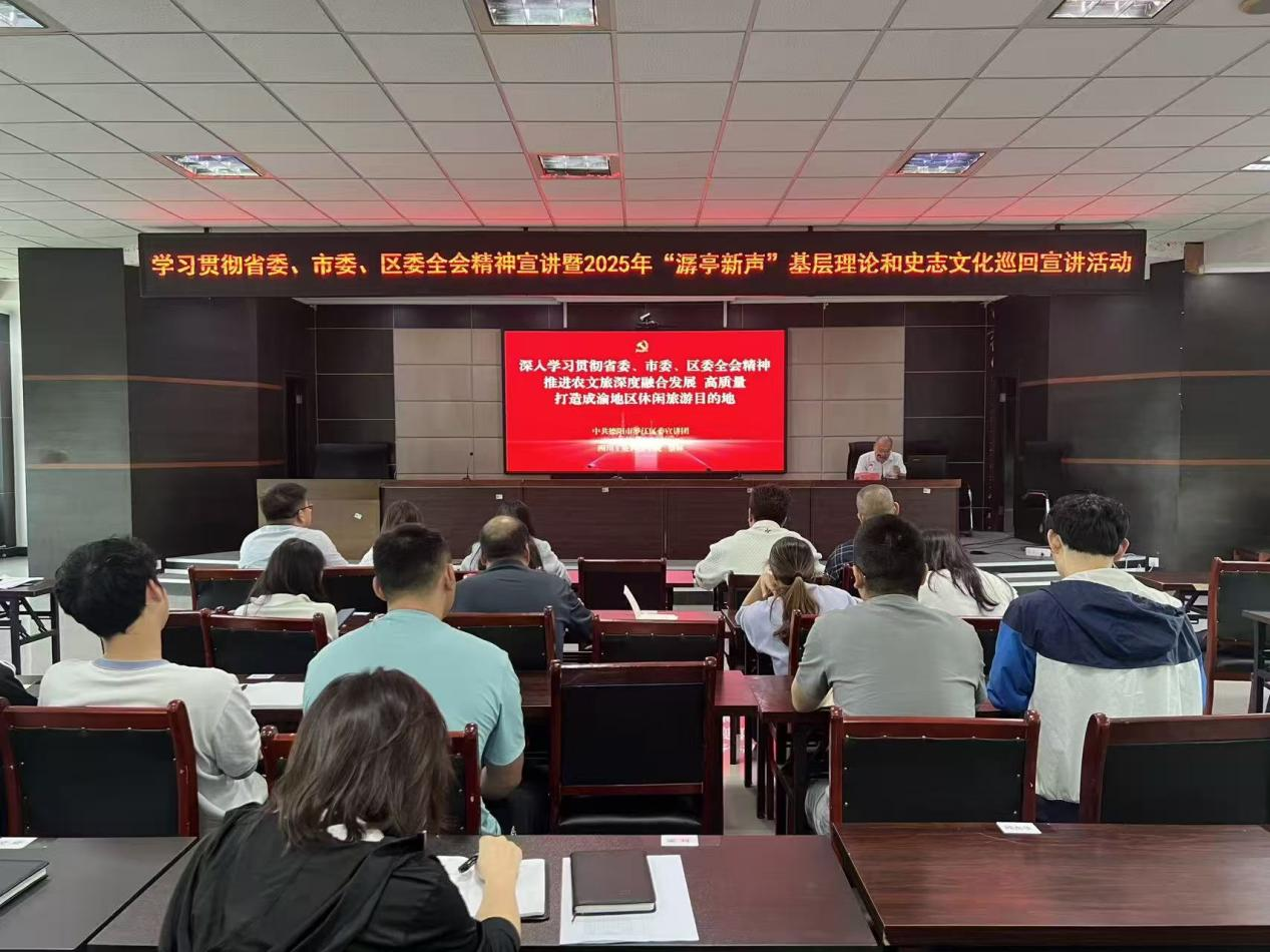 蔡林教授以《推进农文旅深度融合 高质量打造成渝地区休闲旅游目的地》为题,通过“一张蓝图、三个故事、六组数据”的系统框架,生动解读了“锦绣天府·安逸四川”“世界三星堆·安逸游德阳”“蜀道文脉·寻味罗江”等发展战略的实践路径。宣讲内容聚焦“大蜀道”申遗、“大白马关”5A级景区创建、“稻油轮作”种子博物馆、“四季乡村游”等具体项目,以翔实数据与典型案例展现罗江发展机遇,现场反响热烈,听众纷纷表示收获颇丰。