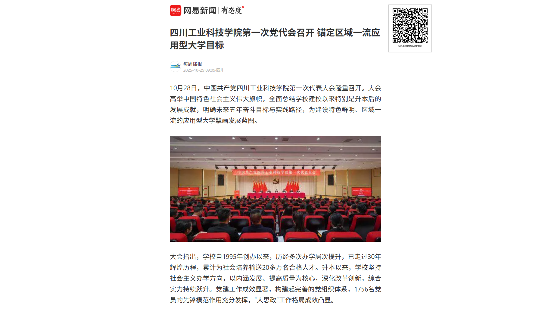 【网易新闻】四川工业科技学院第一次党代会召开 锚定区域一流应用型大学目标