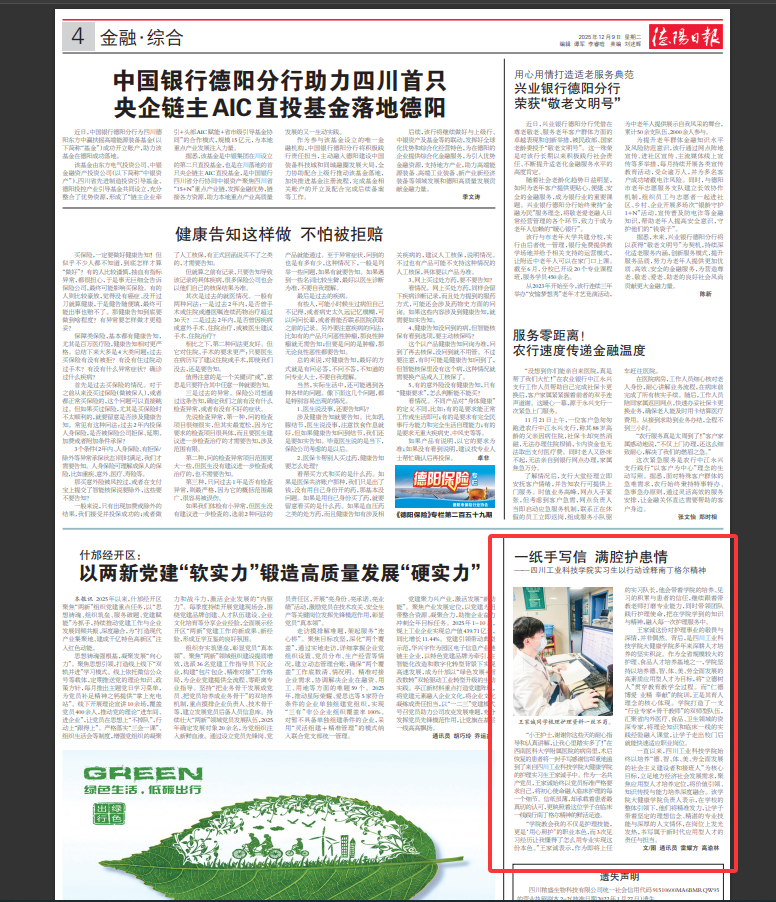 【德阳日报】一纸手写信 满腔护患情——四川工业科技学院实习生以行动诠释南丁格尔精神