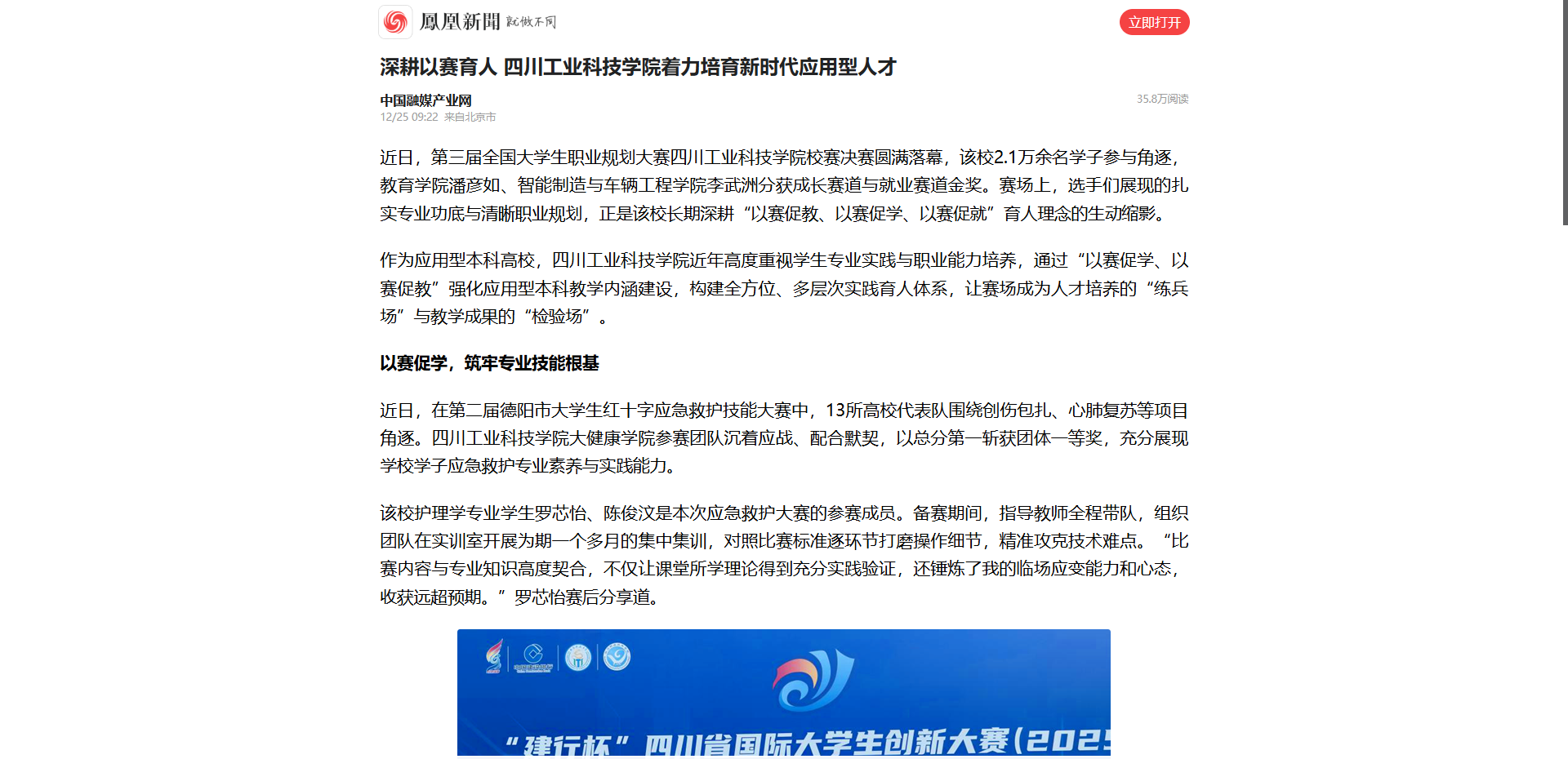 【凤凰新闻】深耕以赛育人 四川工业科技学院着力培育新时代应用型人才