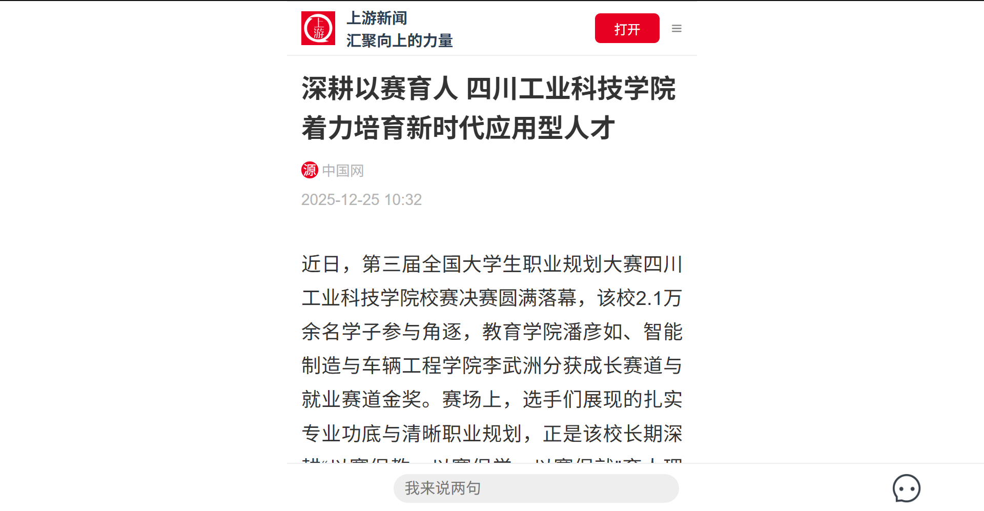 【上游新闻】深耕以赛育人 四川工业科技学院着力培育新时代应用型人才