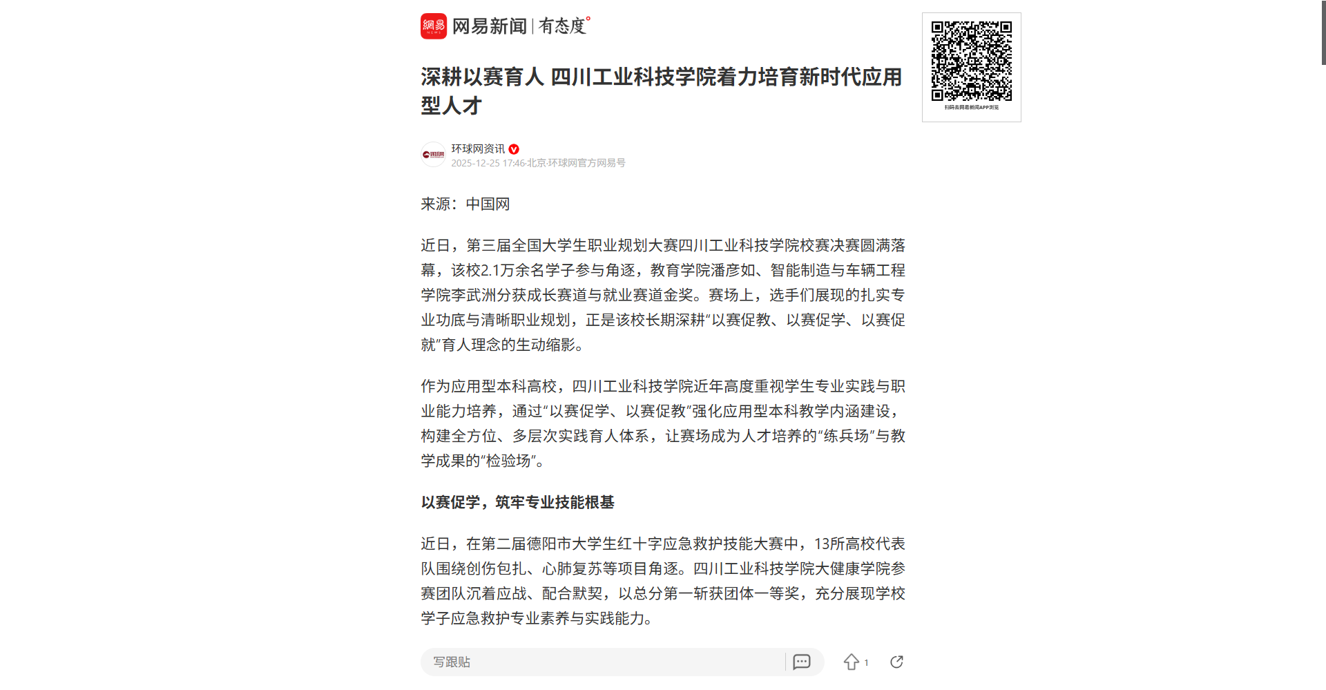 【网易新闻】深耕以赛育人 四川工业科技学院着力培育新时代应用型人才
