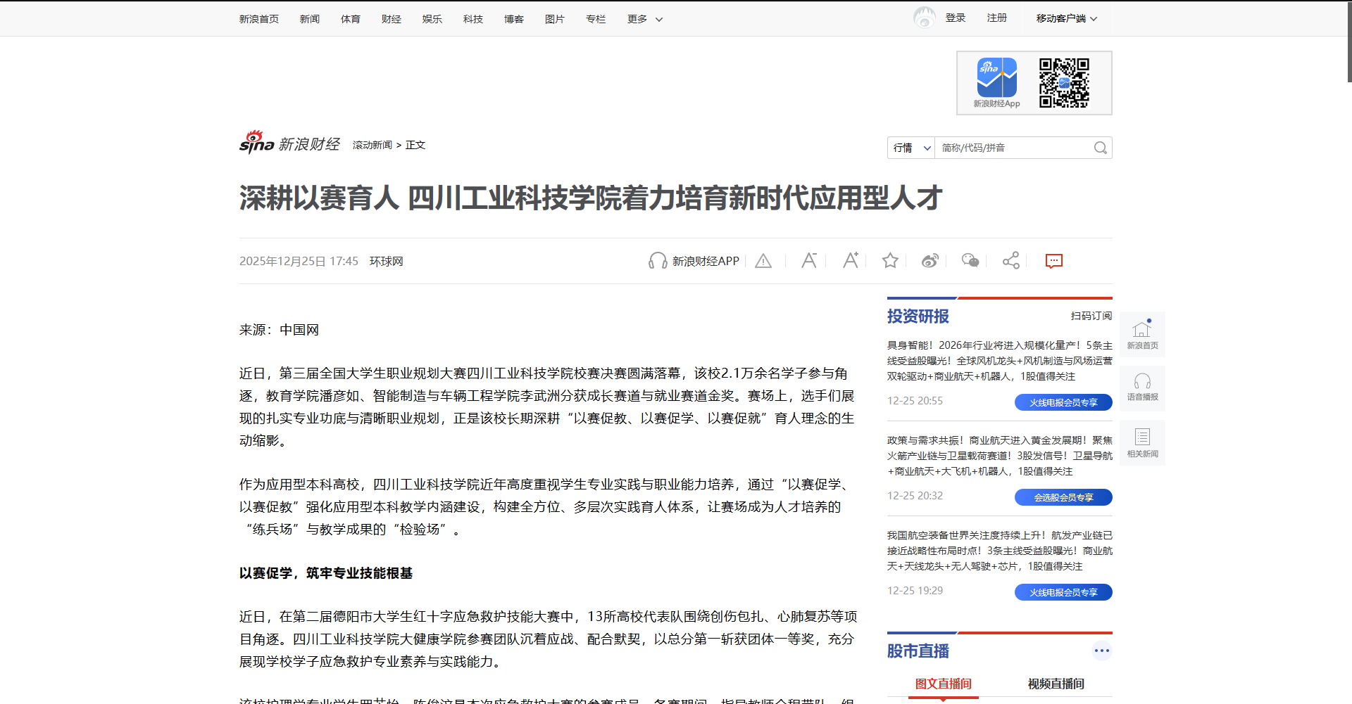 【新浪新闻】深耕以赛育人 四川工业科技学院着力培育新时代应用型人才