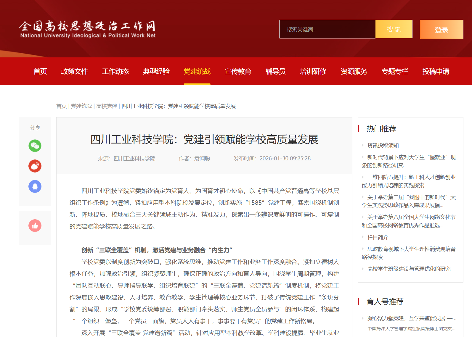 【全国高校思想政治工作网】四川工业科技学院:党建引领赋能学校高质量发展