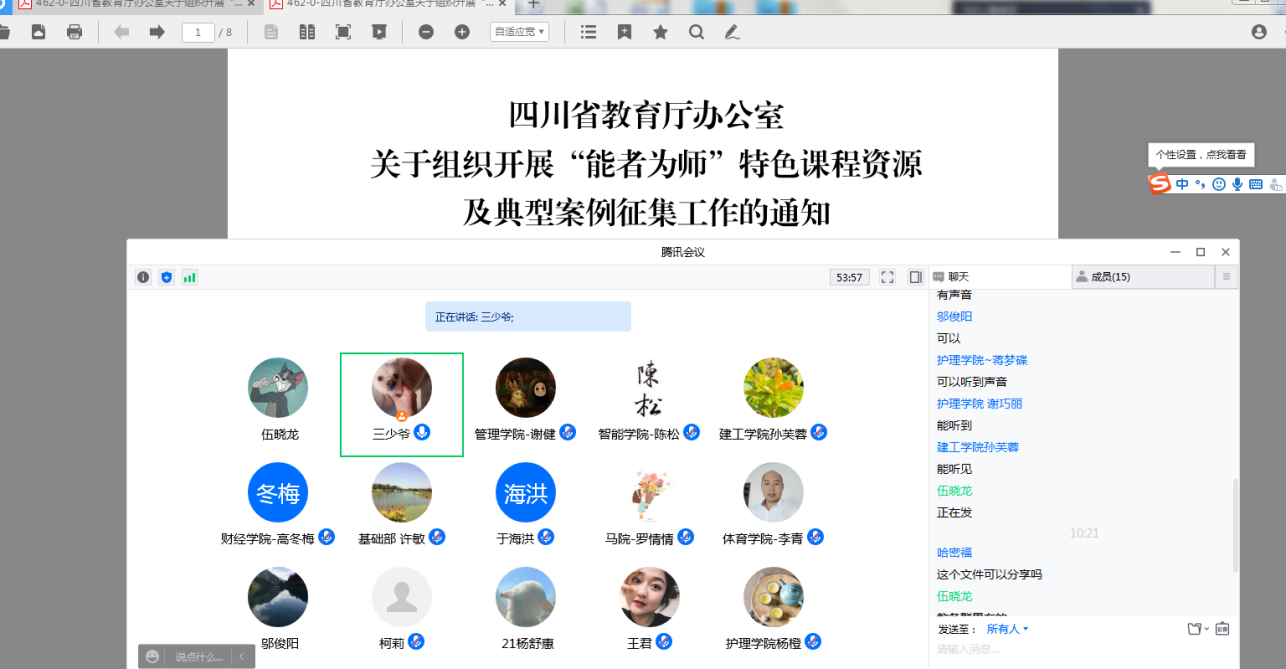 会上,宋文正传达了《关于开展社区教育“能者为师”特色课程推介共享行动的通知》以及《四川省教育厅办公室 关于组织开展“能者为师”特色课程资源及典型案例征集工作的通知》文件精神,指导工作部署,组织参会人员学习相关文件,对“工作目标、申报要求、报送要求”进行了解读学习。强调各教学单位应积极准备,做好组织领导,推进学校“能者为师”特色课程资源及典型案例建设工作。