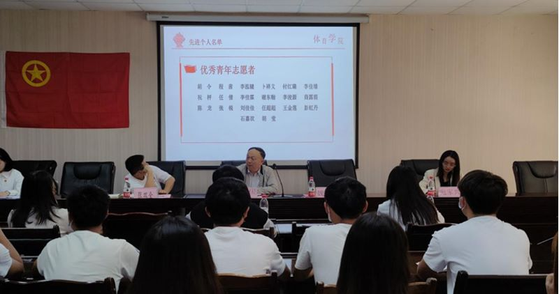 会上,由魏书记宣读2022年五四表彰决定及先进个人、先进集体名单。表彰决定授予2019级社会体育指导与管理02班团支部等6个团支部“先进团支部”;授予吴云先、王渝川等9人“五四红旗标兵”称号;授予胡浪、李科、陈晓丹等40人“优秀共青团干部”称号;授予何丹、康辉、张浩男等67人“优秀共青团员”称号;授予胡令、李泓键等20人“优秀青年志愿者”称号。魏书记并对获得表彰的集体和个人表示祝贺,同时希望受到表彰的集体和个人再接再厉,争取更大的进步,不断作出更大的贡献。