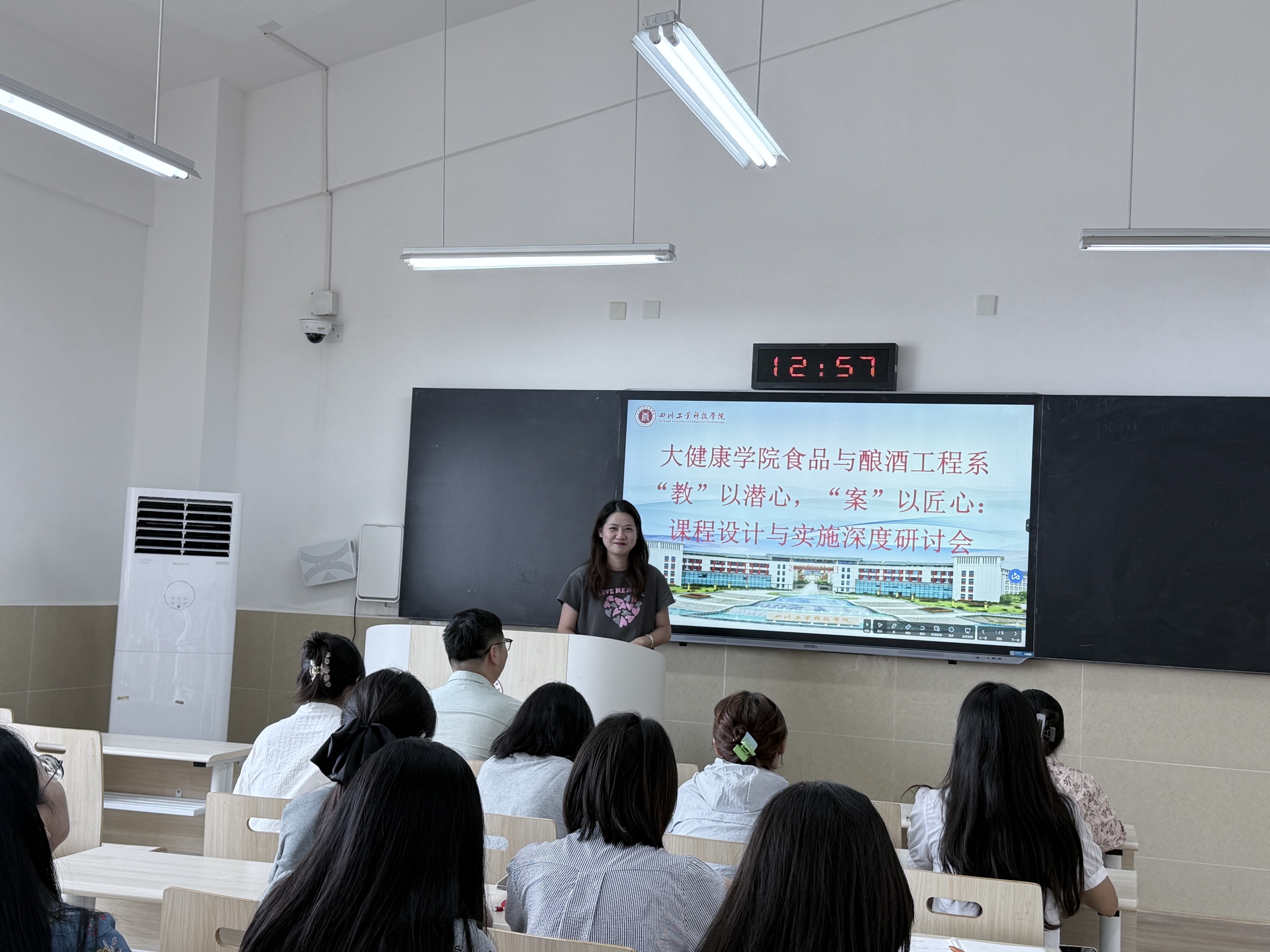 9月5日中午,大健康学院食品与酿酒工程系在龑江校区B501教室召开专业课程设计与实施研讨会。系部全体教师参加会议,院长助理于华出席会议并作开场发言。