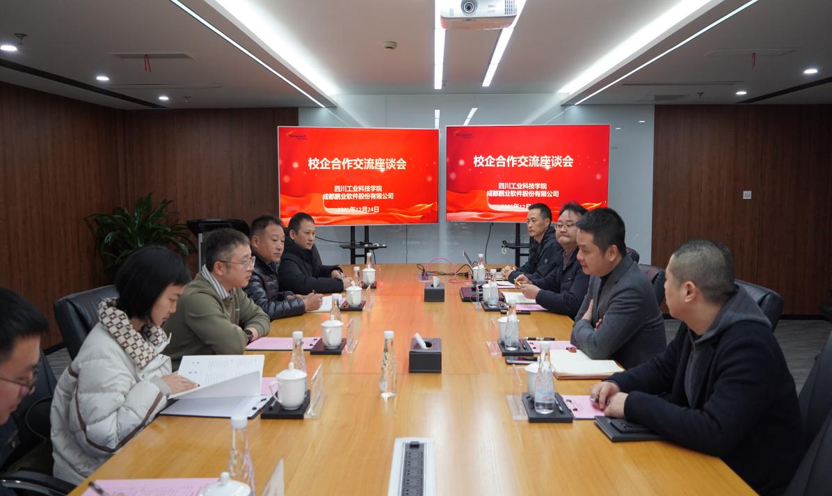 12月24日,信息工程学院院长宋文正、党总支副书记魏天强、产教融合办公室副主任邓杰及计划财务处尹华雯老师一行赴成都鹏业软件股份有限公司开展校企合作交流。双方围绕产教融合、协同育人等议题展开深入研讨,共同探索数字经济背景下人才培养的新模式与发展路径。