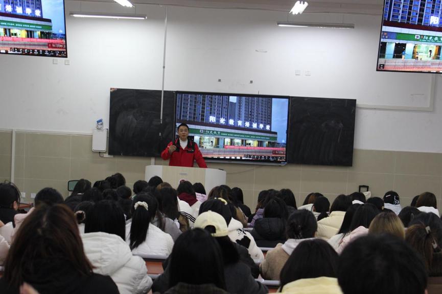 随后,罗江阳光教育培训学校赵老师介绍了机构发展与人才需求。作为在罗江区深耕十二年的本土教育机构,阳光教育始终以教学质量为核心,建立了良好的市场口碑与稳定的生源基础,现已形成文化课、美术、口才、书法、编程等多元课程体系。机构将为教师提供系统培训、团队建设、节日福利及年终奖金等全方位支持。赵老师特别鼓励大三学生以实习或兼职方式提前进行教学实践,为未来职业发展积累经验。