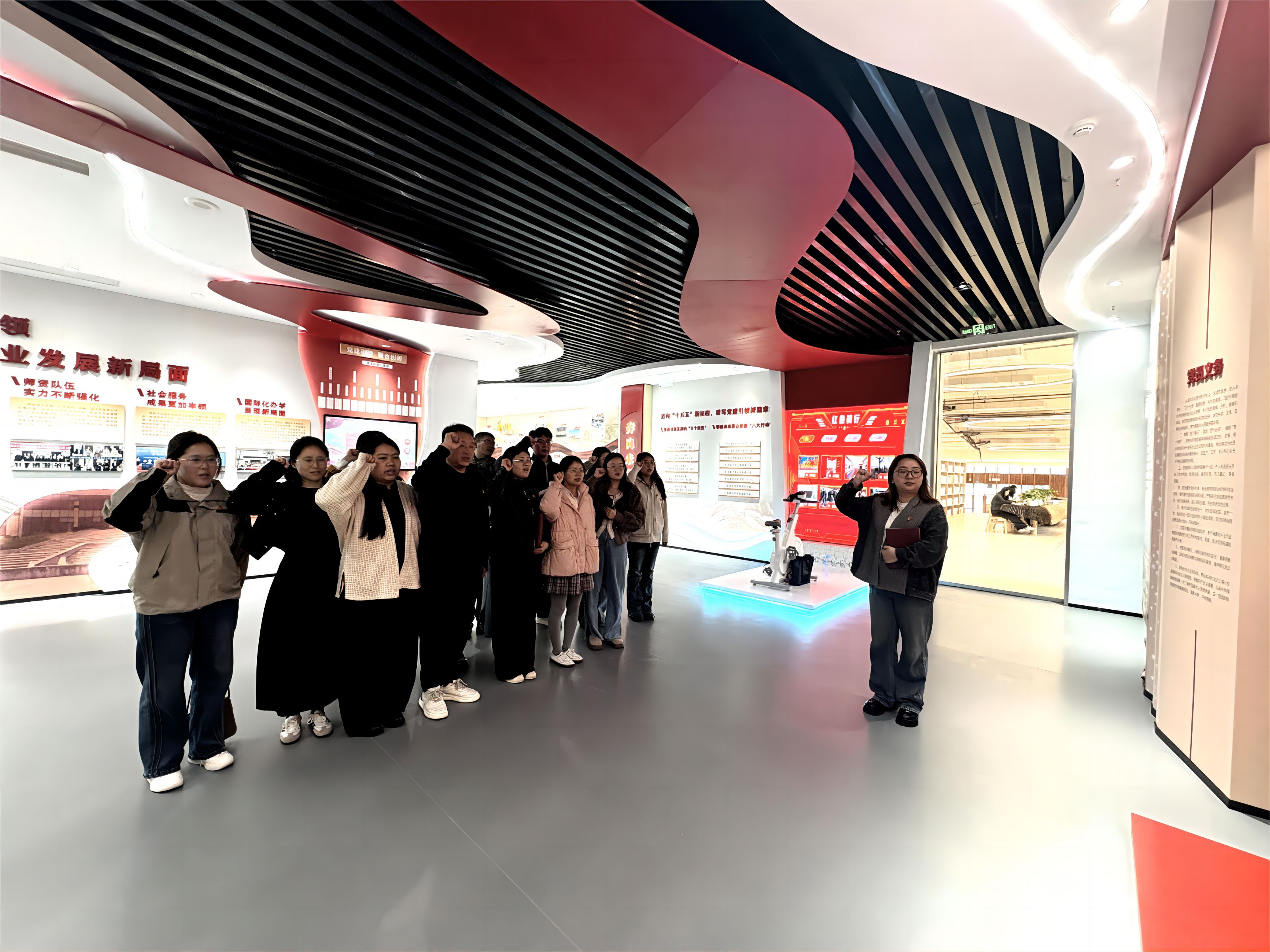 参观结束后,全体党员面向宣誓墙肃立,高举右拳,在领誓人带领下庄严宣誓,重温入党誓词。铿锵誓言回荡展厅,表达了大家坚守初心、担当使命的坚定信念。