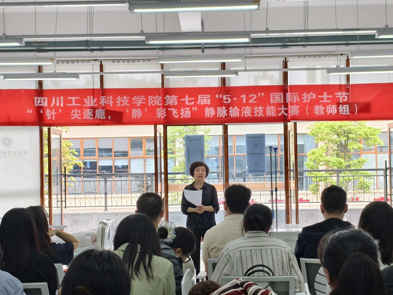 匠心砺技守初心,以赛促教强本领。为锤炼护理教师专业实操技能,提升临床教学水平,4月19日下午,大健康学院在医学护理实验实习中心207室顺利举行教师组静脉输液技能大赛。学院副院长刘琼碧、护理系副主任白雪、综合办主任王君、教学办副主任蒋梦碟及专业教师唐婷、刘盛露担任评委,学院近60名教师到场观摩学习。大赛由刘纹廷主持。