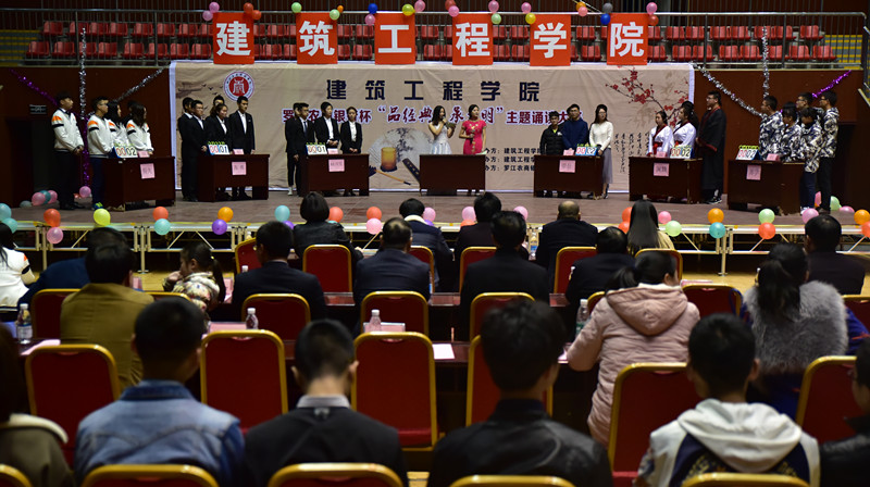 3月26日,建筑工程学院 “品经典·承文明” 诵读比赛在学校体育馆成功举办。校党委书记、校长唐健禾出席活动。