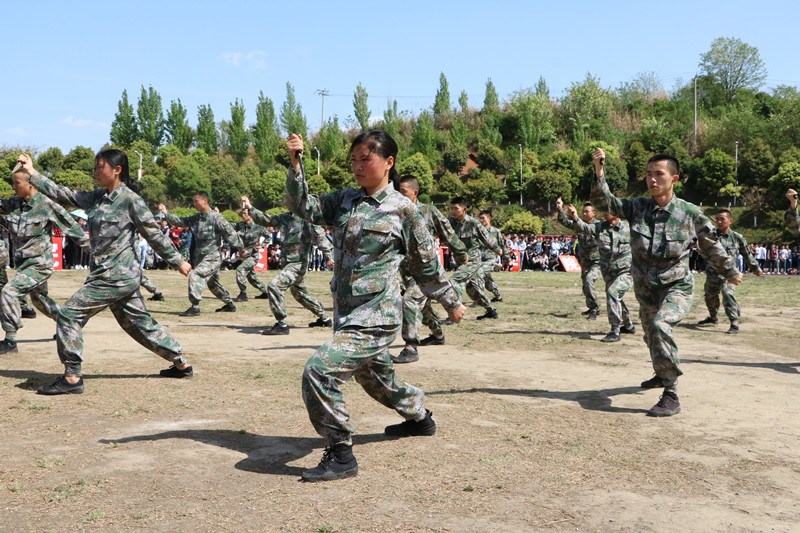 闭幕式上,学校教官队和银杉特训队的同学为大家展示了一场精彩的国防教育素质表演,充分体现了学校的军事化训练素质和水平。