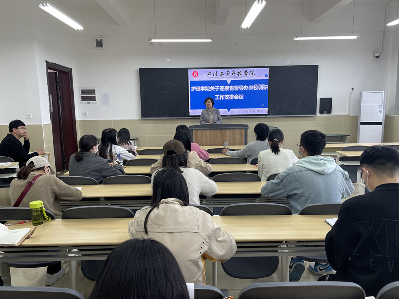 2022年3月29日中午,为更好迎接省督导办对我校的本科教学工作合格评估调研工作,护理学院于10—504教室召开了迎接省督导办来校调研工作安排会议。会议由教学办主任杨橙主持,护理学院全体教职工参加会议。