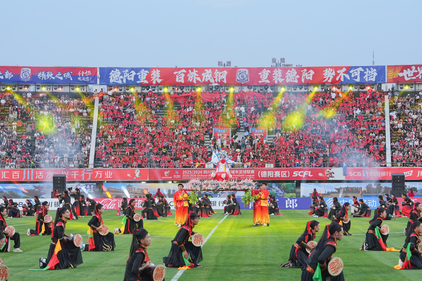 古韵新声融体育,青春风采耀赛场。4月25日,2025/2026赛季川超联赛总决赛第七轮,德阳重装队坐镇主场迎战达州川汉子队,开幕式上由四川工业科技学院体育学院500余名师生带来的非遗民俗展演《潺舞》震撼登场,以古蜀风华邂逅足球激情,为现场观众奉上一场刚柔并济的文化盛宴,也为家乡球队呐喊助威。