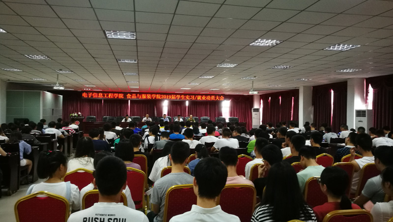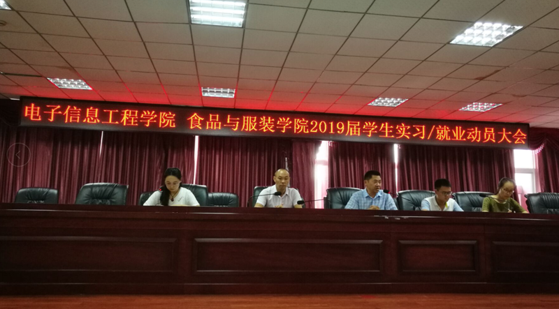 8月2日下午,电子信息工程学院&食品与服装学院2019届学生实习与就业动员大会在D408会议室召开。学院党支部书记陈亨贵、院长龙厚彦、学工办主任马娟花、教学办副主任刘亚君、培训办副主任李明,电子信息工程学院&食品与服装学院2019届全体本专科学生参加了此次会议。会议由马娟花主持。